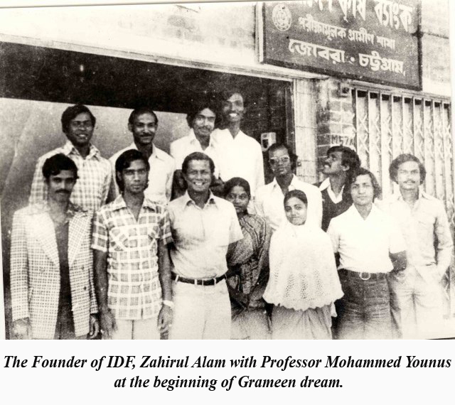 Zahirul Alam, Founder of IDF  started his career with Nobel Laureate Prof. Muhammad Yunus  as the founder member-secretary of the Rural Economics Program (REP) of the Department of Economics of Chittagong University from where Grameen Bank Model was developed in 1973. He completed his Master’s with honours in Economics from the University of Chittagong, Bangladesh in 1975. He left REP in March 1976 to join Bangladesh Academy for Rural Development (BARD) as Action Research Fellow . He worked in BARD on building a sustainable Microfinance Institution for the poor for about 8 years and then joined ILO in Addis Ababa, Ethiopia in March 1984 as a Specialist in Income Distribution and Basic Needs Related Issues and later as Economist in 1989.